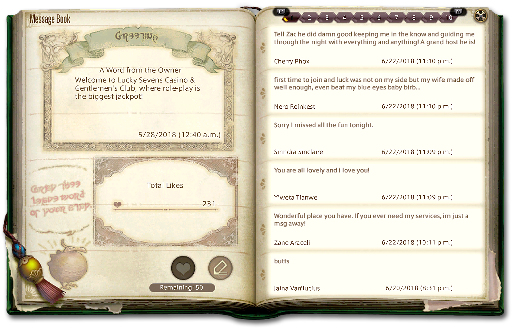 Lucky Sevens Guestbook
