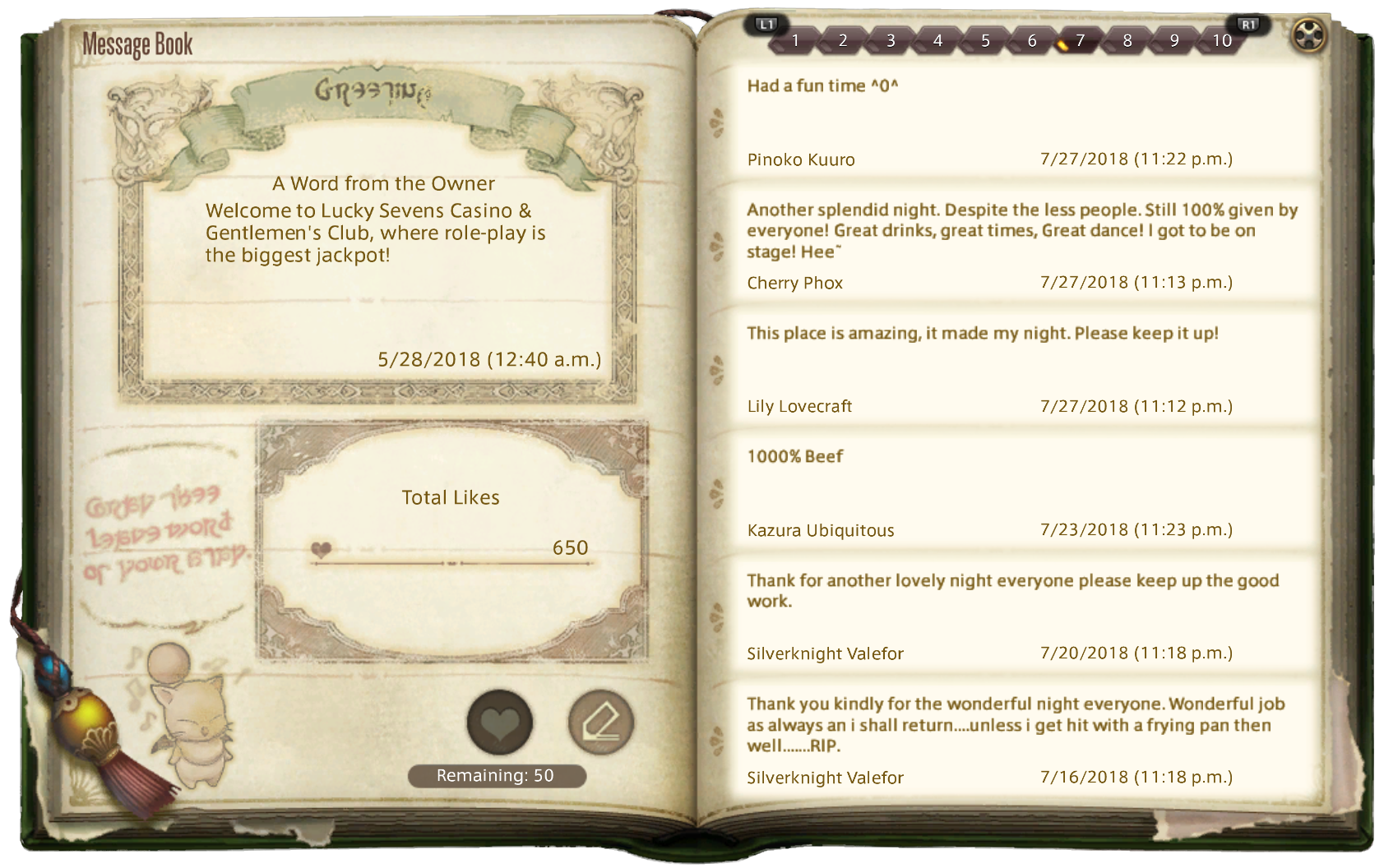 Lucky Sevens Guestbook