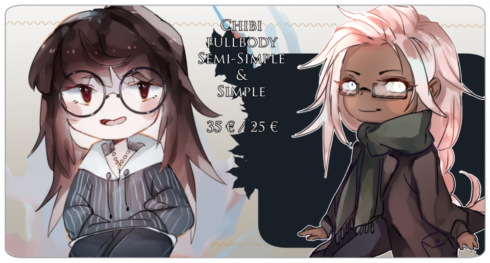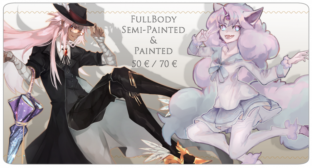 Hello! I'm ready to take some commissions! For mean time I'd love to work on something simple so I offer a full-body character with solid bg like the examples below. Starting price is $45 and can grow with design/pose complexity. Will do: human-like characters. Payment: upfront via Paypal. Contact me: whoiskidcat at gmail.com, dm, or via discord #8219 Thanks! . . .